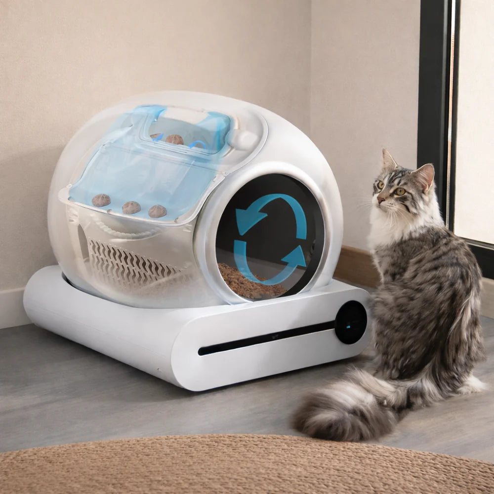 Le cycle de nettoyage intelligent Dès que votre chat quitte l'habitacle, les capteurs de poids ultra-sensibles détectent son départ. Après un délai de sécurité, le tambour entame une rotation lente et silencieuse (seulement 35 dB). Le système de tamisage interne sépare avec précision les excréments et l'urine agglomérée de la litière propre.