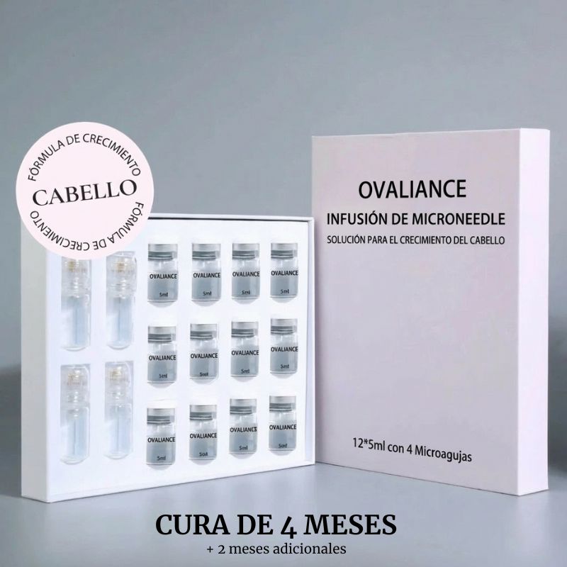 Gracias a esta combinación única de activos potentes, nuestro sérum de reparación y crecimiento de Ovaliance actúa directamente sobre las causas de la caída y el debilitamiento capilar. Revitaliza el cuero cabelludo, estimula el crecimiento del cabello y fortalece la fibra para una melena más densa, fuerte y visiblemente más sana.
